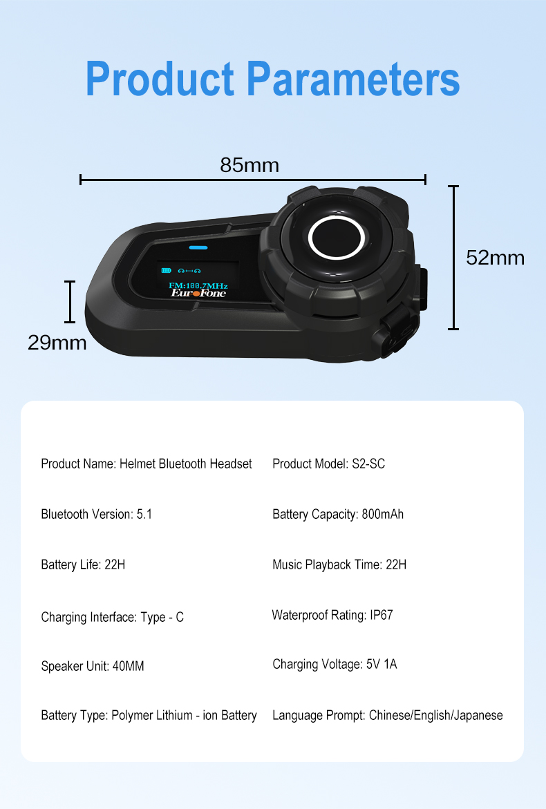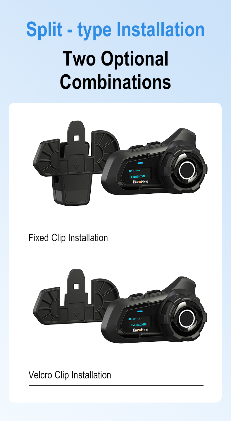 【IP67 Waterproof & Dustfree】 EuroFone intercom system is highly adaptable to various weather conditions, with IP67 waterproof and dustfree. Perfect for most open face, modular and full-face helmets, it is built to withstand tough conditions like dust,rain,storm,snow and low temperature.Ideal choice for motorcycle and snowmobile riders.