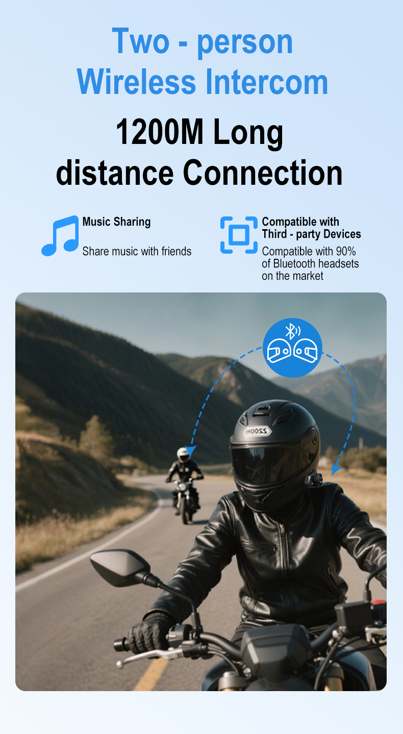 【2-Riders full duplex intercom at 1200M】Experience seamless communication while riding your motorcycle with the EuroFone helmet intercom kit. Enjoy real-time conversations with your ride buddy up to 800 meters away,without the need for shouting. Share your passion for motorcycle travel, skiing, and other activities with ease.