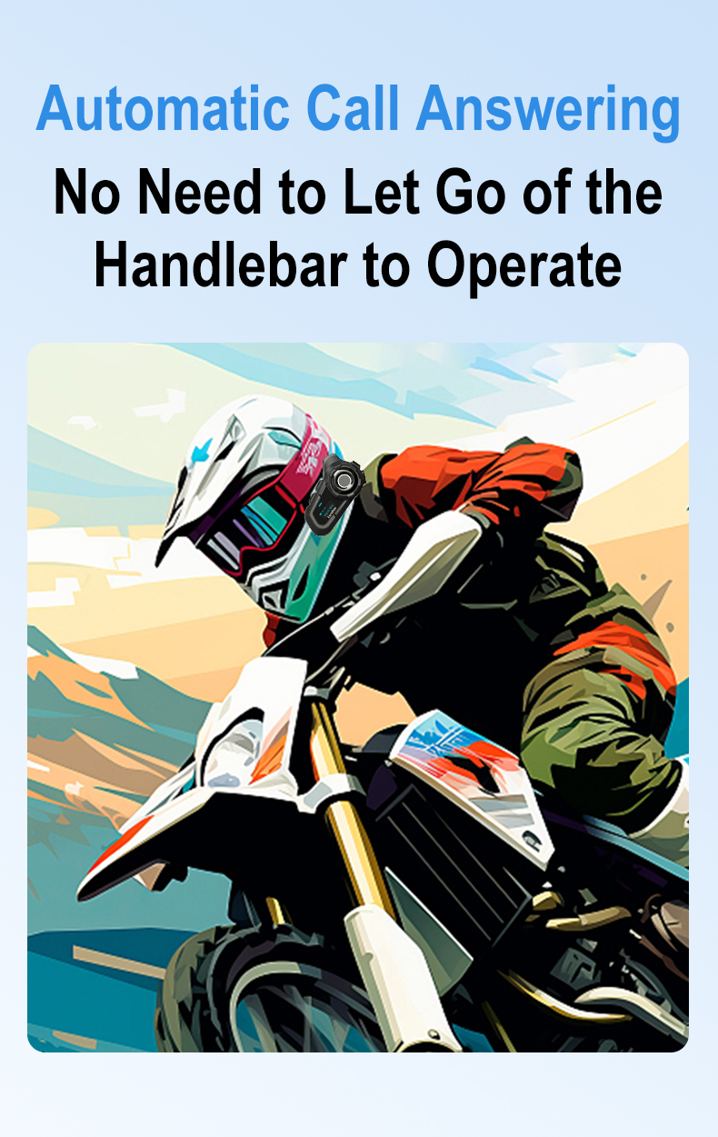 【Auto Answer and Voice Control】The Motorcycle Helmet headset can 10 seconds Automatically answer for hands-free communication, with the automatic answering feature, you can answer calls without having to take your hands off the handlebars or fumble for your phone, making it safer and more convenient to take phone calls. By simply pressing helmet headset voice control button, you can easily summon your voice assistant or Siri to perform a variety of tasks without taking your focus off the road.
