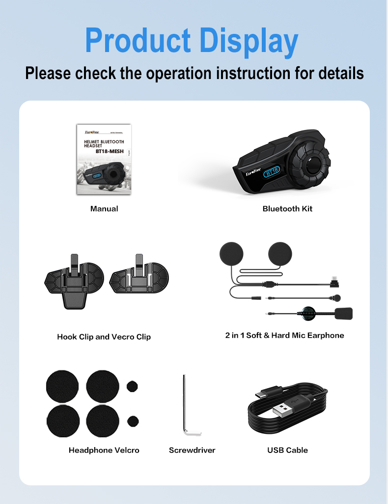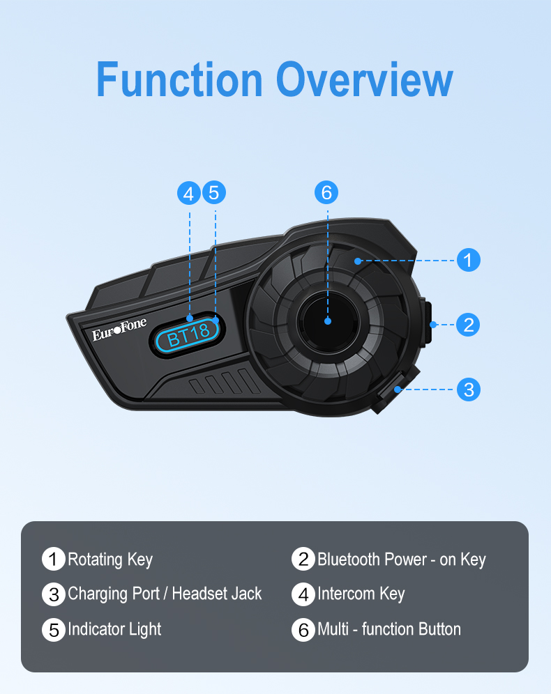 [ Cross-Brand Connectivity& Precise Button Control]: The EuroFone motorcycle intercom can communicate with riders using different headset brands with the cross-brand connectivity feature, extending intercom capabilities and fostering collaboration among riders.Facilitate convenient operation while riding with large, easy-to-press buttons, allowing for blind operation and ensuring safety on the road.
