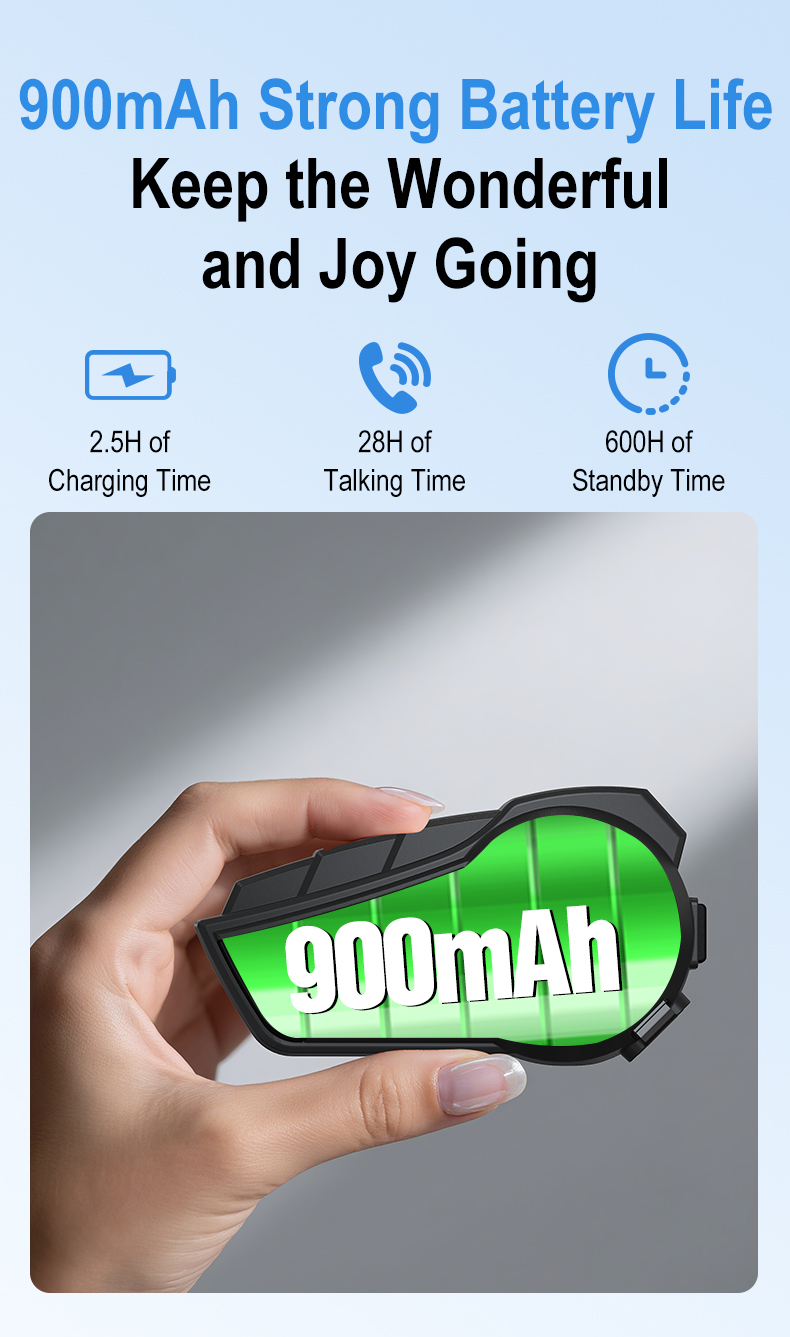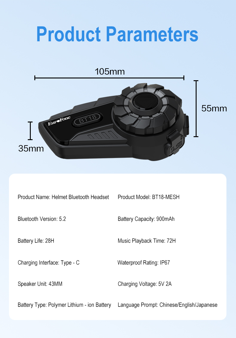 [900MAH Great Battery life & IP67 Waterproof] Stay connected for extended periods with the 900mAh large capacity battery, The EuroFone motorcycle helmet bluetooth providing ample power for 15-18 hours of music,phone call and intercom talk time.Ride worry-free in any weather conditions with IP67 waterproof rating, ensuring durability and reliability even in rainy or wet environments.The working temperature range is -4°F to 140°F