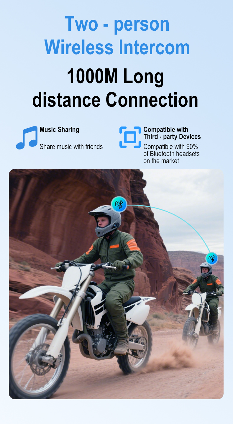 [Dual-core Qualcomm Bluetooth V5.2, Audio Multitasking & Music Sharing]: Thanks to the Dual-core Qualcomm Bluetooth V5.3, the EuroFone helmet Bluetooth supports multi-tasking audio output for simultaneous music playback and intercom communication, or phone call and intercom communication. It not only provides you with personal music enjoyment but also supports music sharing mode. It effortlessly connects with your fellow riders, allowing you and your buddies to simultaneously enjoy the same song and share a musical feast together. The optimal distance for music sharing is between the rider and passenger, or within 50 meters.