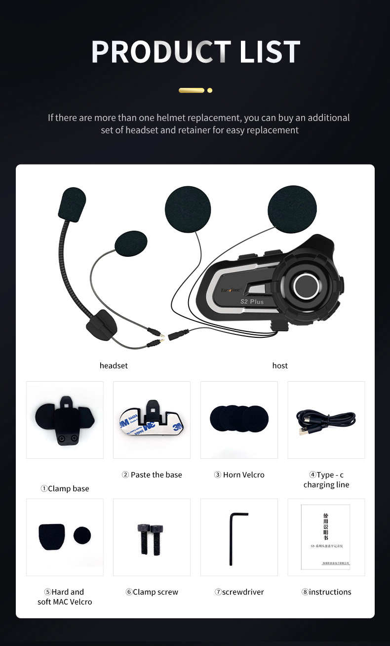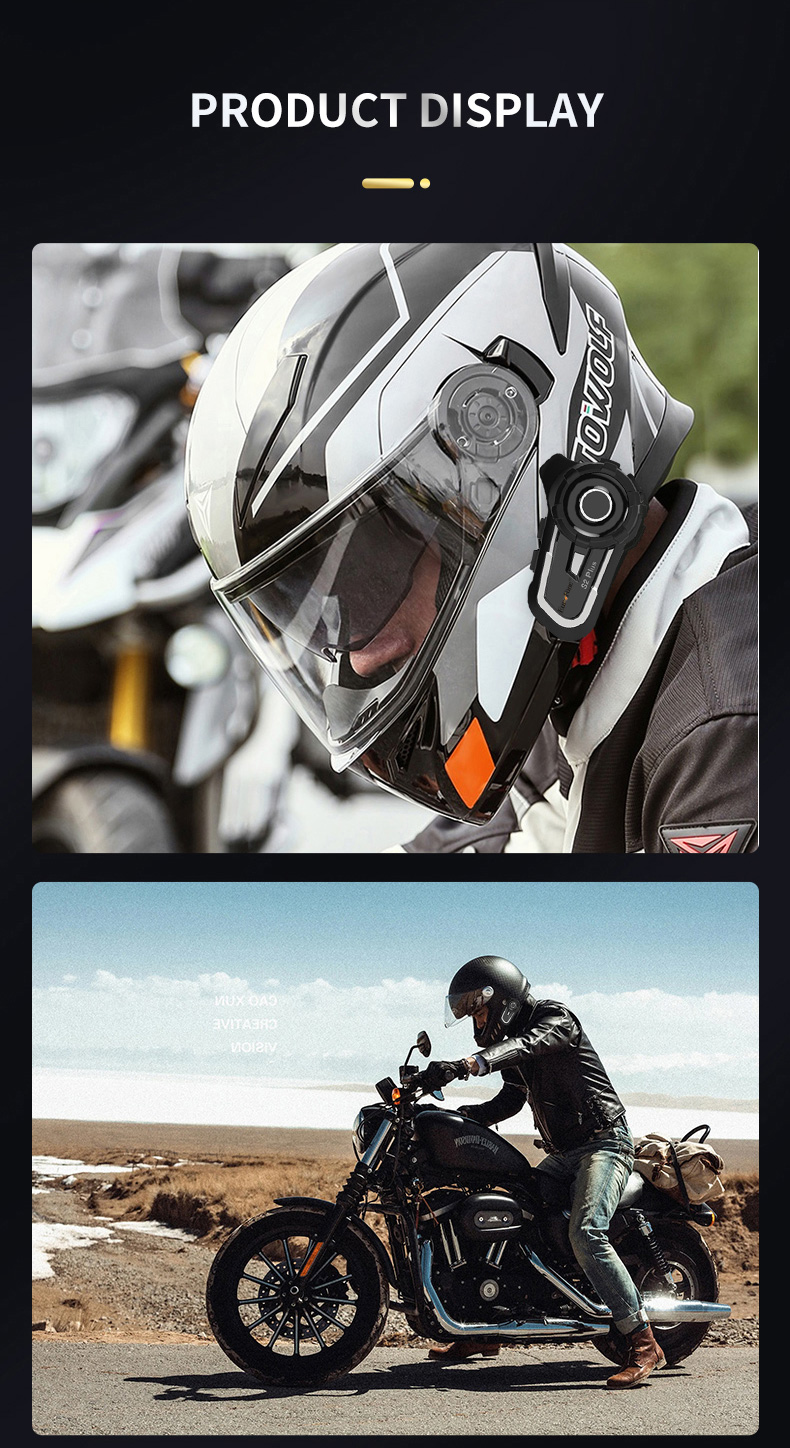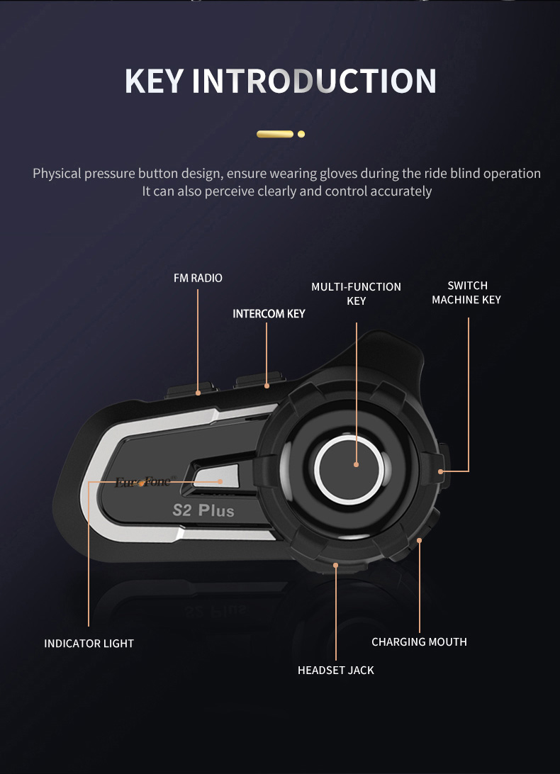 【Music Sharing& 40mm Hi-fi Stereo speaker】The EuroFone S2 PLUSmotorcycle communication systems not only provides you with personal music enjoyment but also supports music sharing mode. It effortlessly connects with your fellow riders, allowing you and your buddies to simultaneously enjoy the same song and share a musical feast together. Equipped with a 40mm Hi-fi Speaker and professionally tuned audio, the EuroFone S2 PLUS Helmet Speakers presents every detail with clarity and vibrancy.