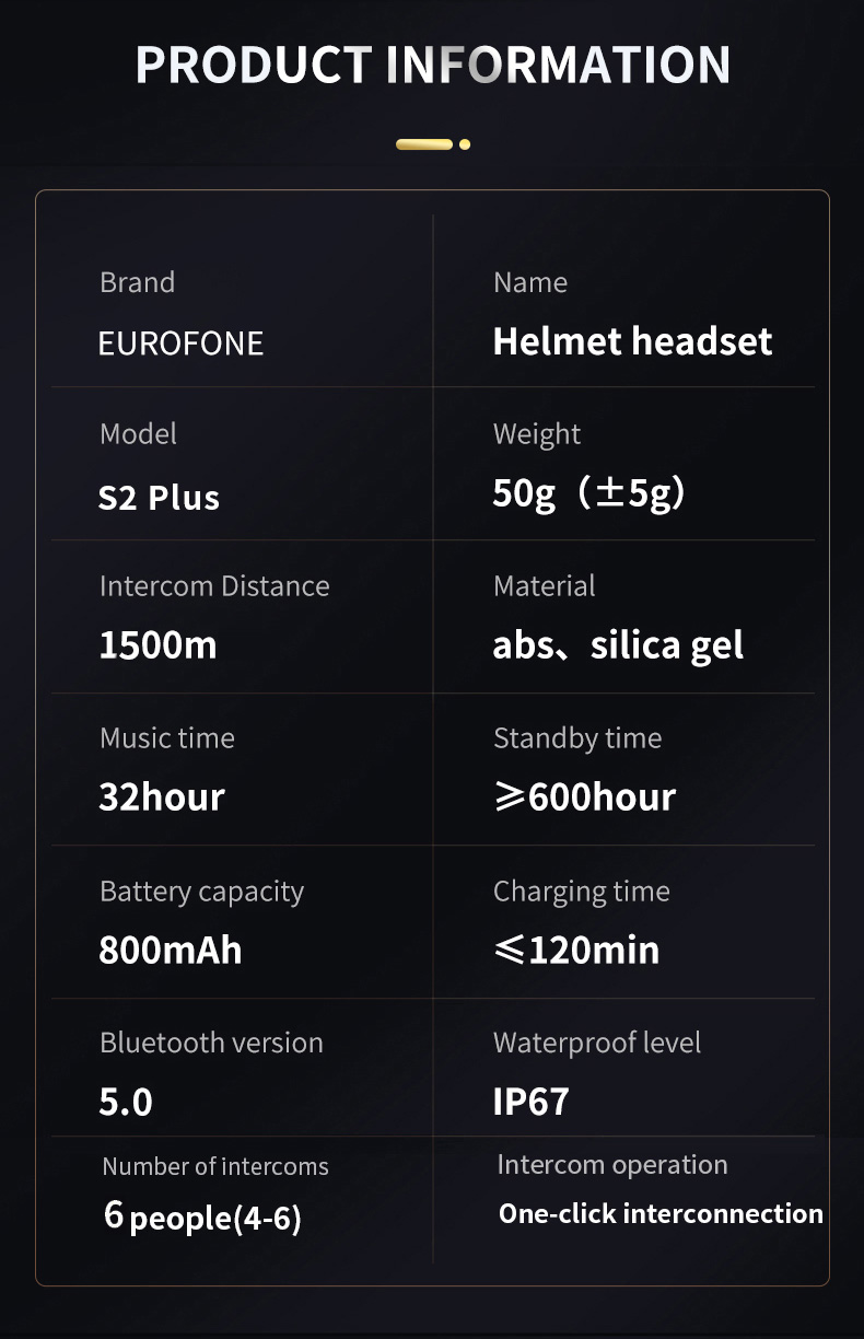【Large Battery Capacity of Bluetooth Motorcycle Helmet】 The EuroFone S2 PLUS intercom runs on 800mAh large rechargeable battery, just charge for 2.5 hours, the intercom working time can reach 8 hours and the standby time can reach 600hours