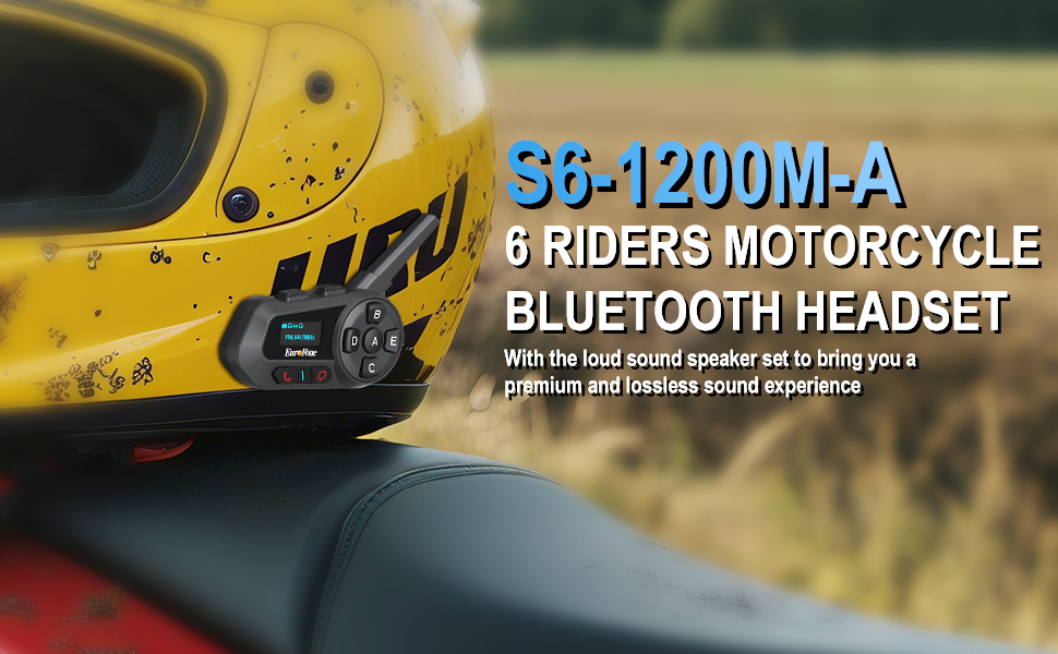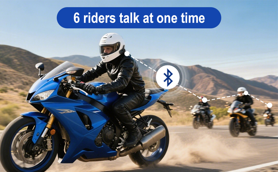 【2-Rider Intercom System】 S6-1200-A motorcycle bluetooth headset supports pairing of 6 people but only 2 riders can talk to each other (the host can choose any one of the 5 people). The distance can reach 1200M between 2 people, within the effective distance, the sound is clear and stable, and S6-1200-A motorcycle intercom can communicate well with partner.