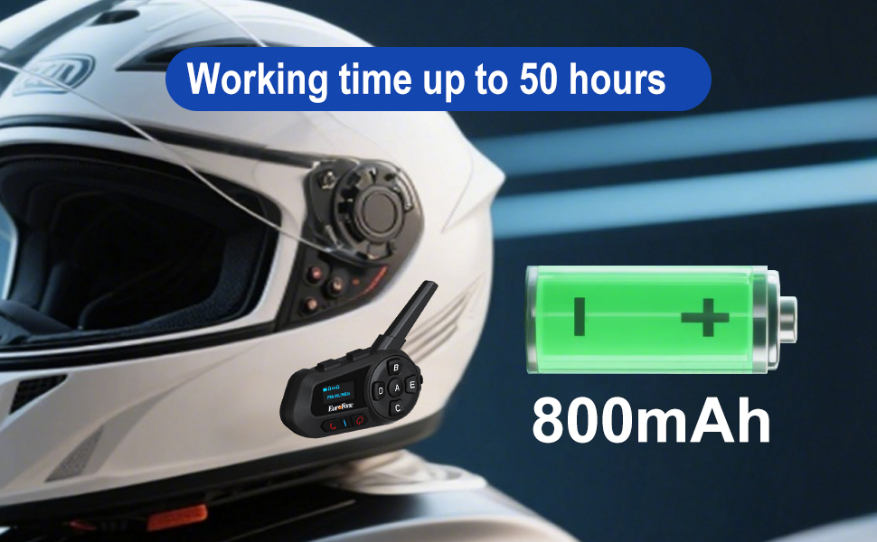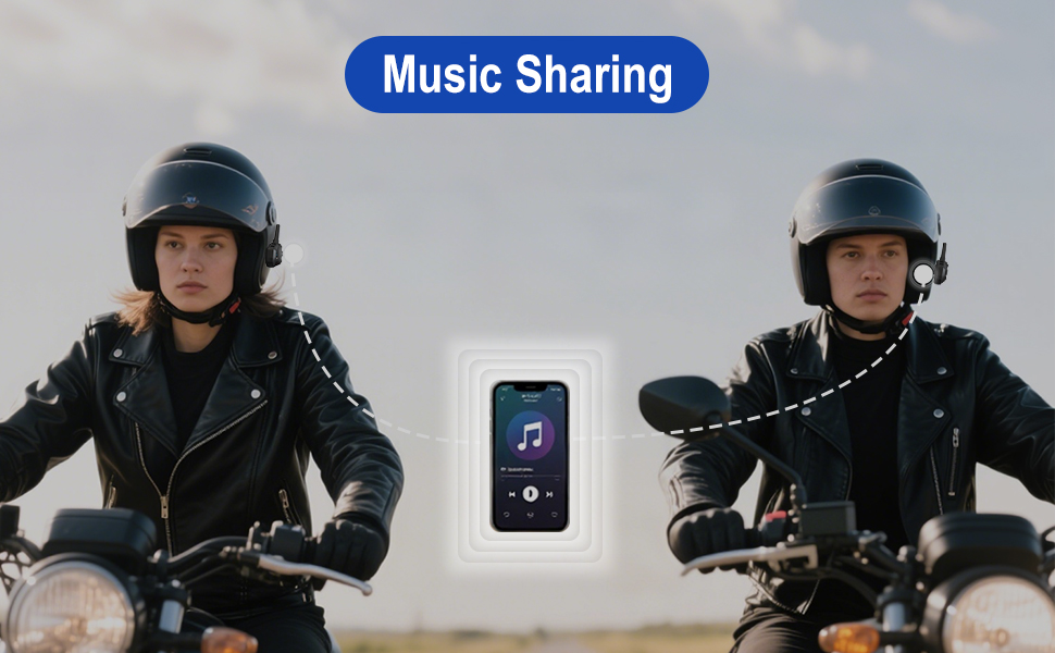 【800mAh Battery & Music Sharing】This motorcycle bluetooth helmet speakers has a battery capacity of 800 mAh and charges using the TYPE-C interface, allowing for a rapid full charge in just 2.5 hours. Once fully charged, it can last up to 600h on standby, 32h for listening to music, and 50h for continuous calling.It also featured music sharing,allowing two riders to share the joy of the same song during their trip