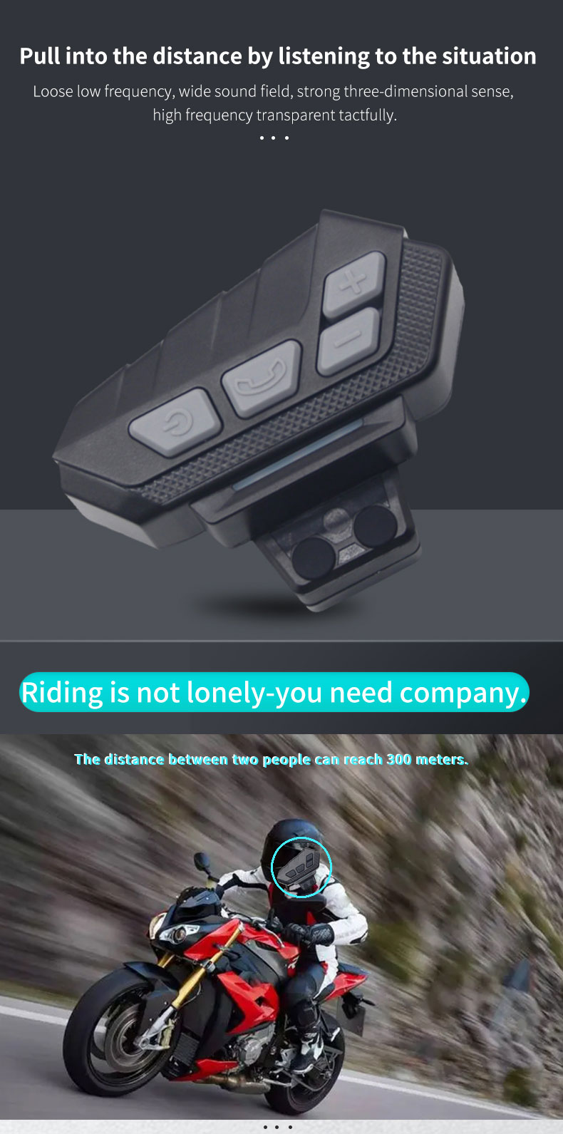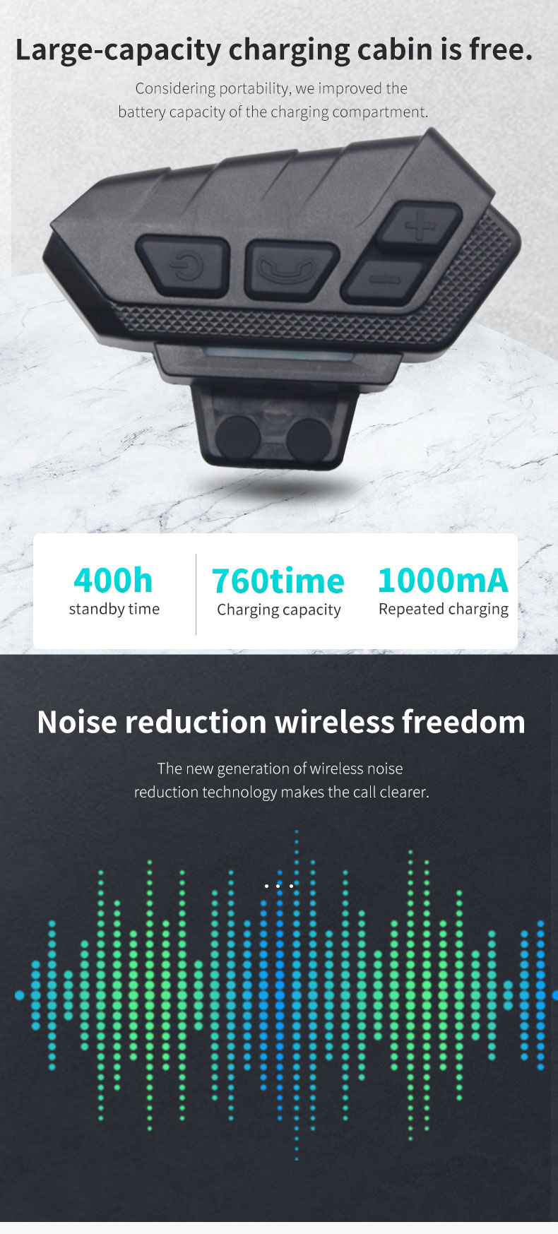 【1000mAh Professional Battery and Stable Connection】:The motorcycle Bluetooth headset use 1000mAh professional battery,you will get more than 25 hours music/talk time,low power warning and power save mode.The stronger Bluetooth compatibility technology,can be paring with most devices.Quick pairing.Reconnect automatically.Signal stability.Low power consumption.30 meters connection distance.