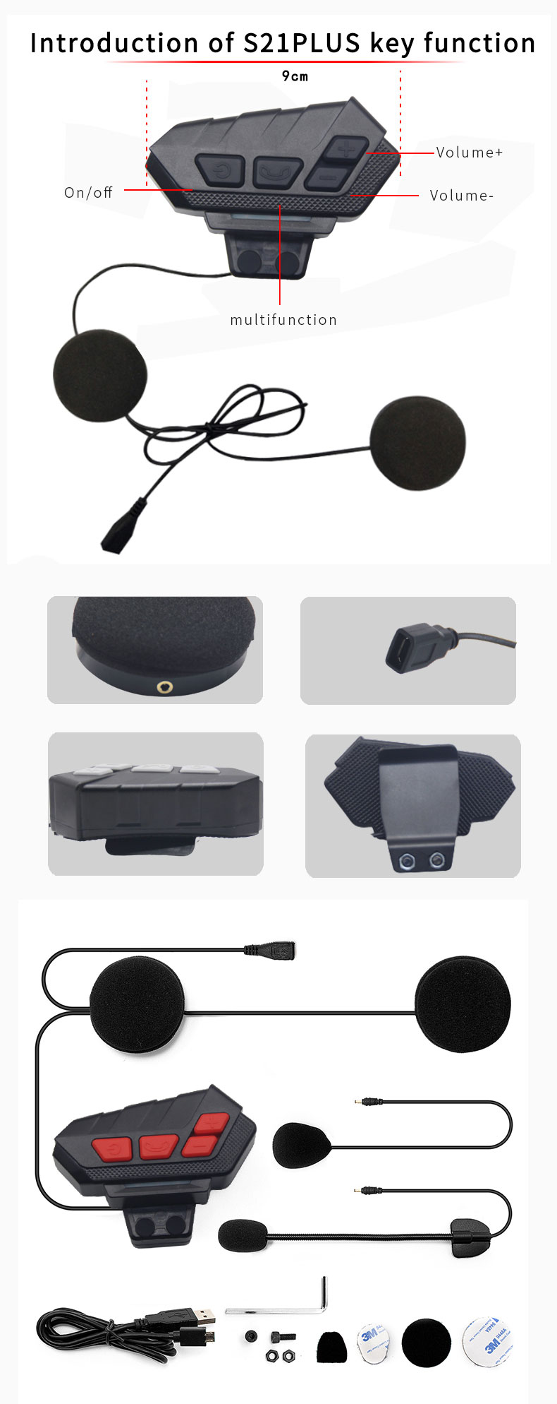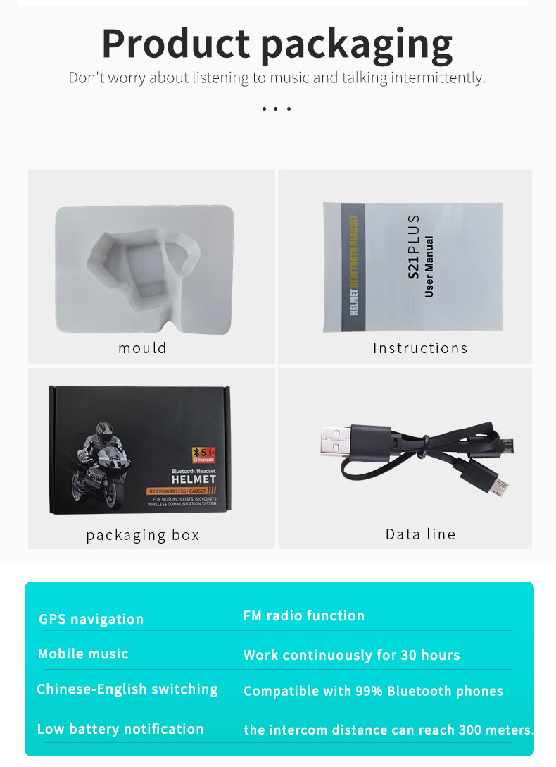 【IPX6 Waterproof and Easy to Use】:The S21 PLUS Bluetooth helmet speakers use IPX6 waterproof technology that can handle all weather conditions.No fear of wind and rain.Just turn on the headset,long press the function key to enter the Bluetooth matching mode (at this time, the red and blue light of the machine flashes), and select the motorcycle Bluetooth headset model matching your mobile phone to use.